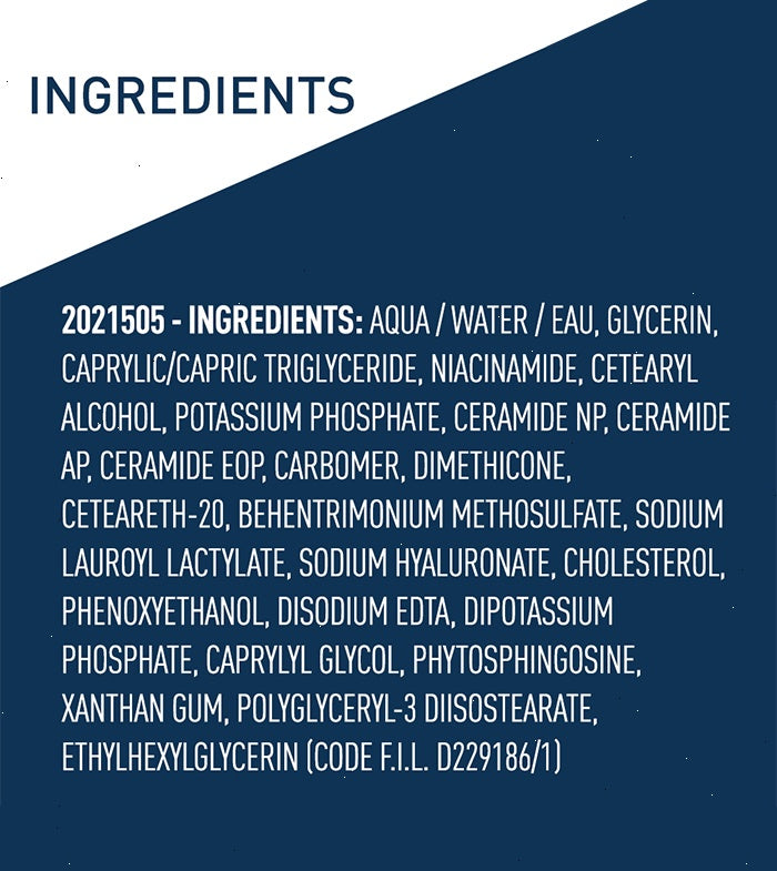 CeraVe PM Facial Moisturizer, formulated with niacinamide, hyaluronic acid, and three essential ceramides, uses our MVE Technology to deliver a steady stream of much-needed moisture for continuous hydration throughout the night while helping restore the skin barrier.