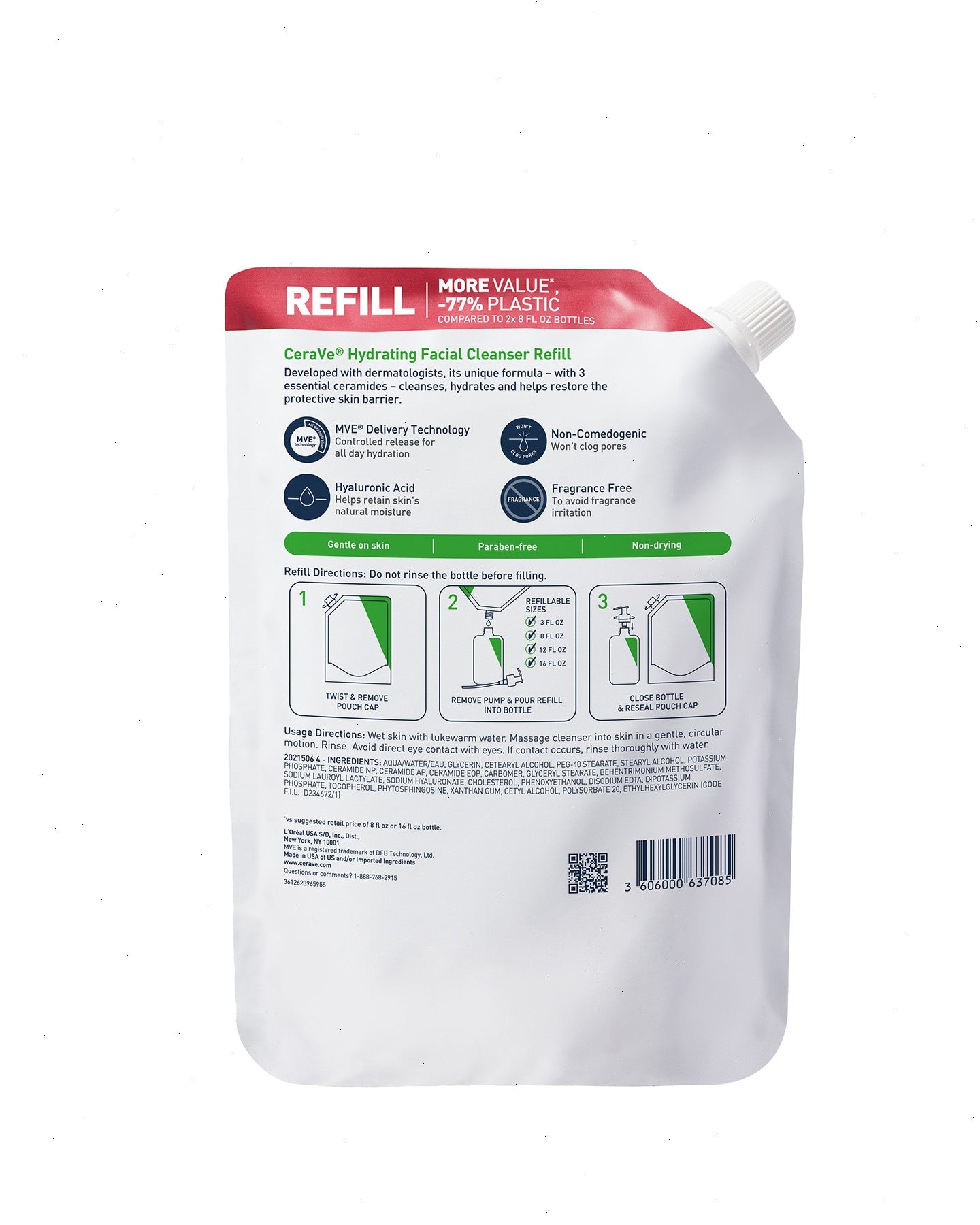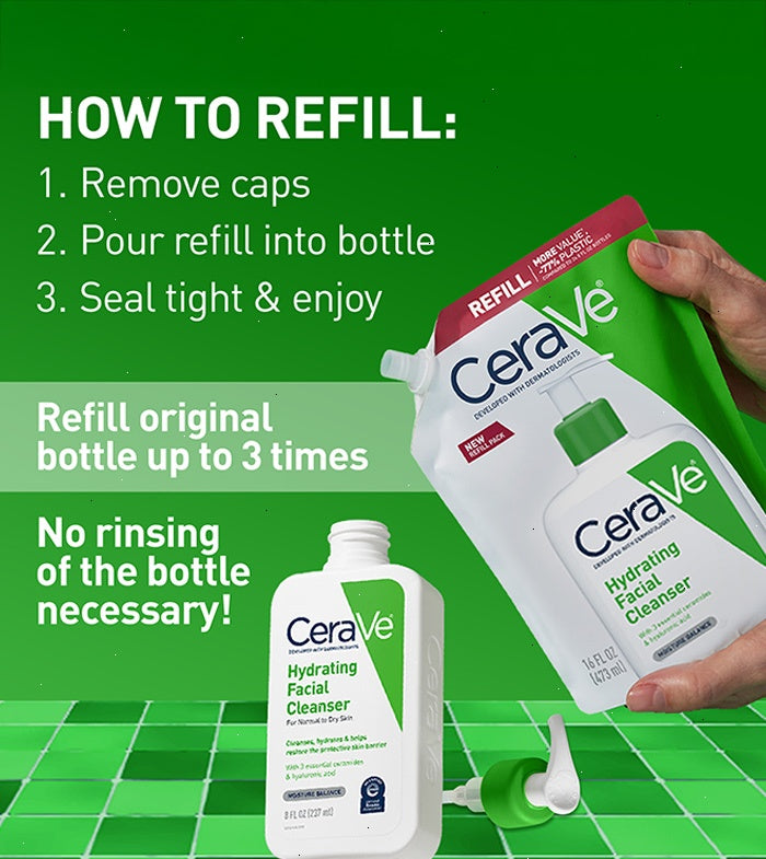 CeraVe Hydrating Facial Cleanser was designed to cleanse and refresh the skin without over-stripping it or leaving it feeling tight and dry. Now available in a refill format.